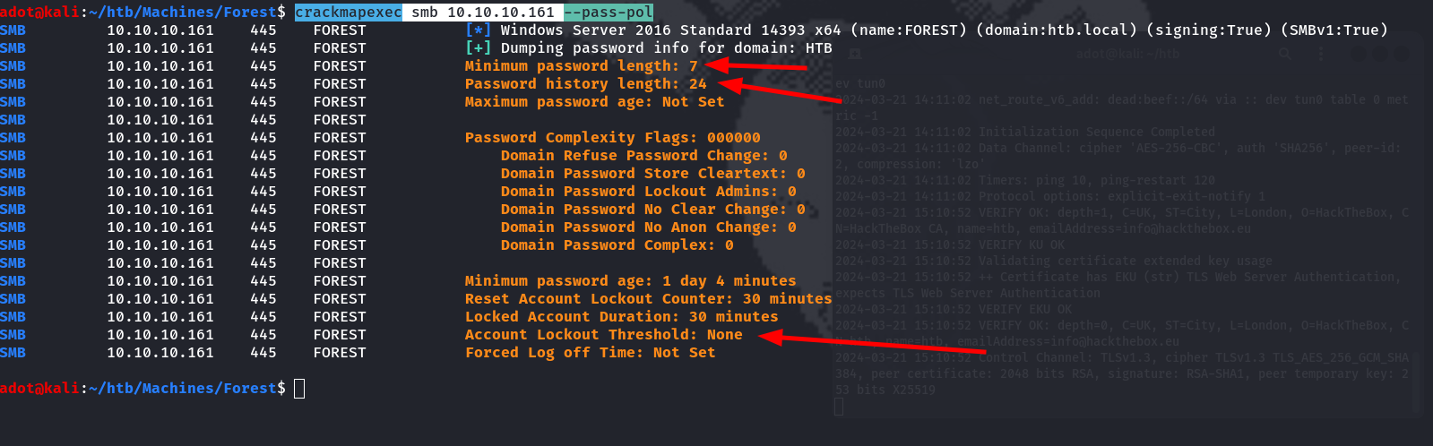 crackmapexec smb 10.10.10.161 -u '' -p '' --pass-pol