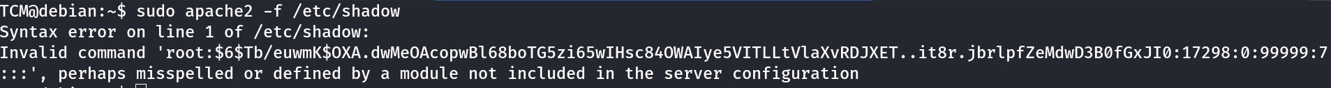 Apache 2 has the ability to read files so you can abuse this by reading the shadow file