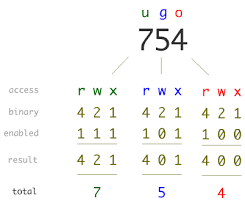 4 bits for READ, 2 bits for WRITE and 1 bit for EXECUTE. chmod 777 would be rwx across the board
