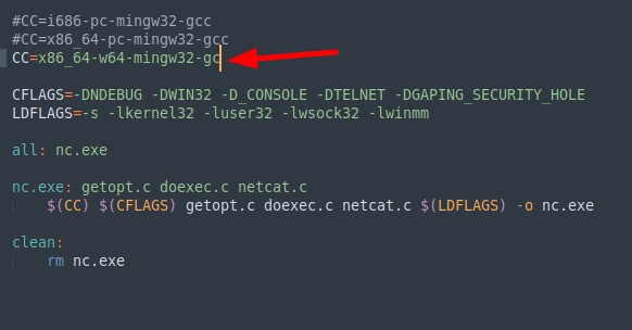 Edit make file and add `CC=x86_64-w64-mingw32-gcc`