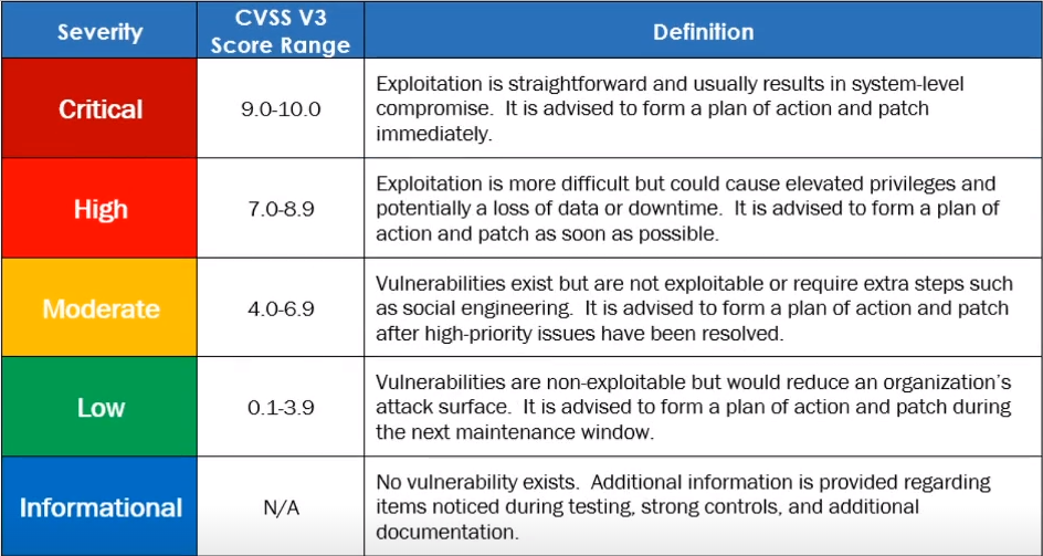 • Example: You find a XSS vulnerability in one of their web applications but they had it accessible through a whitelist only. This would make the Likelihood of the attack go down along with the severity rating (High or Moderate).