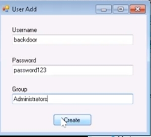 This function will add a backdoor user to the Local Administrators Group