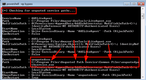 wmic service get name,displayname,pathname,startmode | findstr /i "auto" | findstr /i /v "c:\windows\\" | findstr /i /v """sc.exe qc iobitunsvrExploitation via PowerUp
